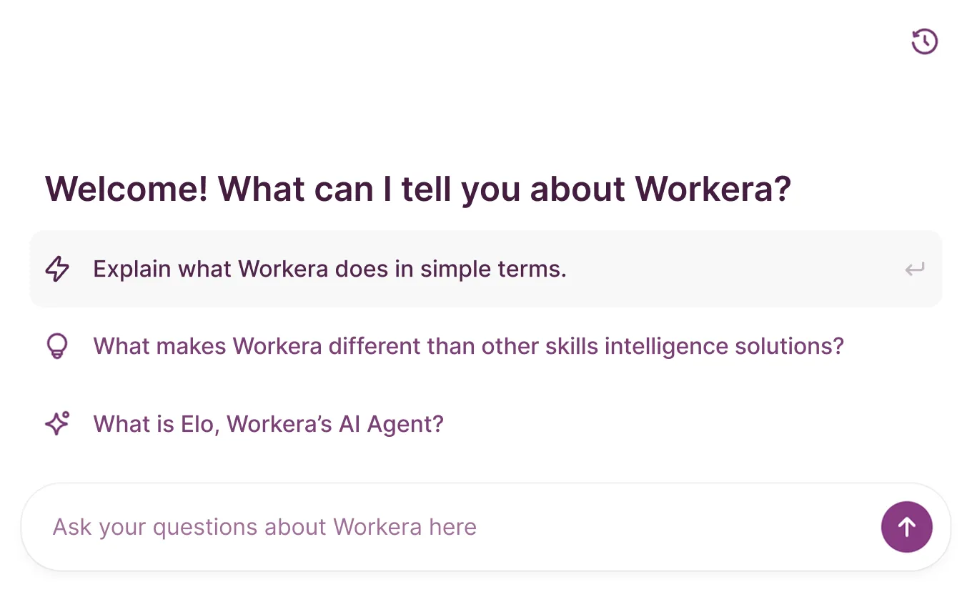 Powered by Elo, your AI Mentor, verified skills insights connect to your LMS, ATS, HRIS, LXP, and analytics tools through Workera’s skills data layer so every system works from the same trusted foundation.